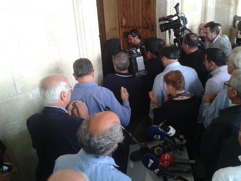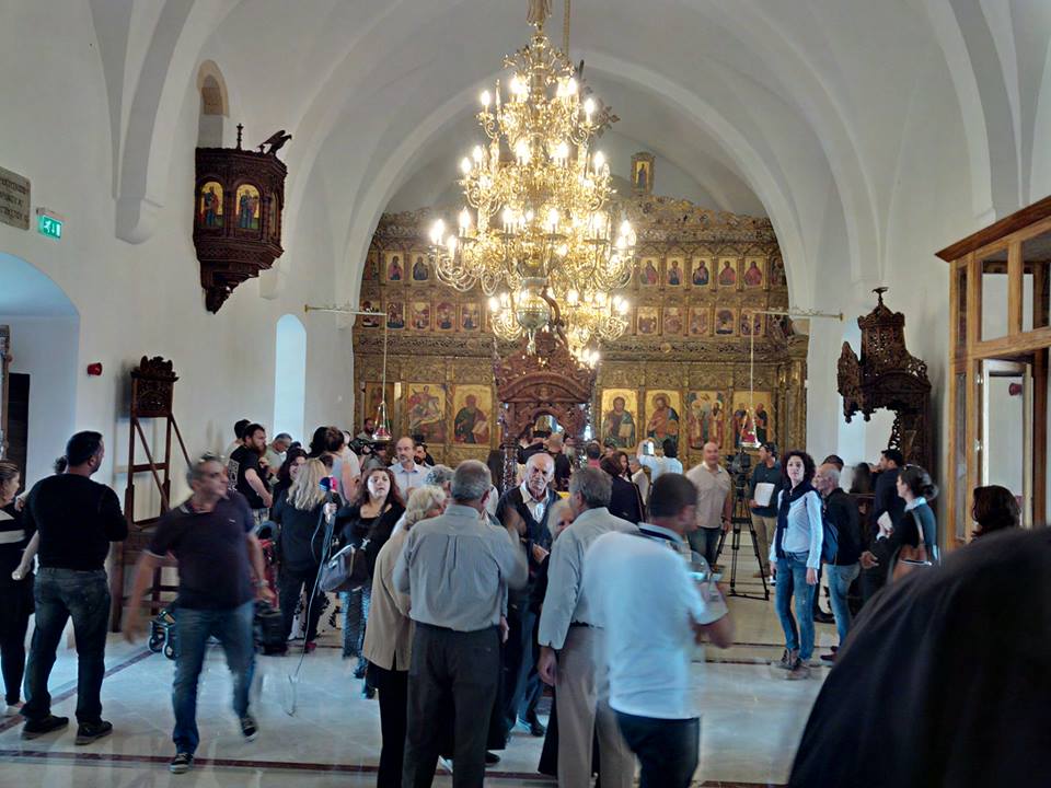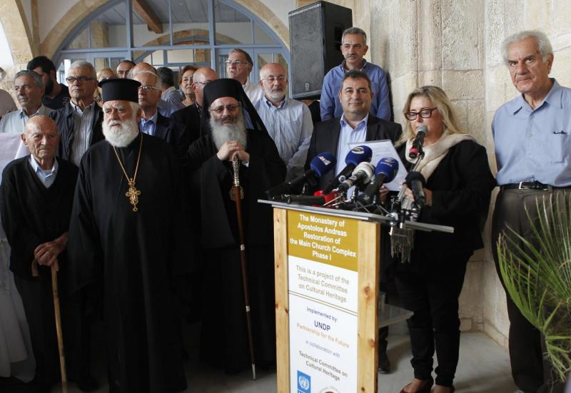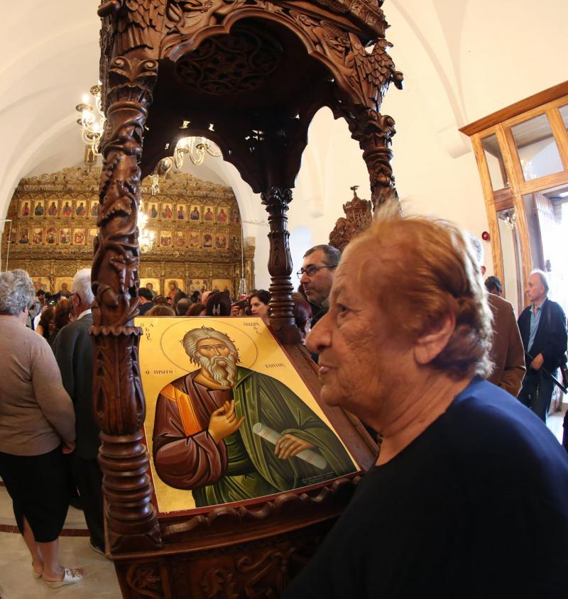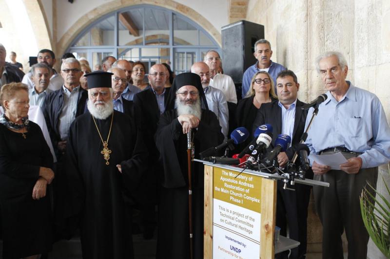 Πιστοί από το Ριζοκάρπασον, οι πλείστοι ηλικιωμένοι, στο άκουσμα ότι σήμερα θα παραδίδετο ο ανακαινισμένος ναός, μετέβησαν στο Μοναστήρι .Το παρόν του κατά τη διάρκεια της παράδοσης δήλωσαν τα μέλη της διαχειριστικής επιτροπής του Αποστόλου Ανδρέας , τα Κοινοτικά Συμβούλια Ριζοκαρπάσου όπως και τα μέλη της Τεχνικής Επιτροπής για την Πολιτιστική Κληρονομιά, οι εκπροσώπους του United Nations Development Programme και κληρικοί.