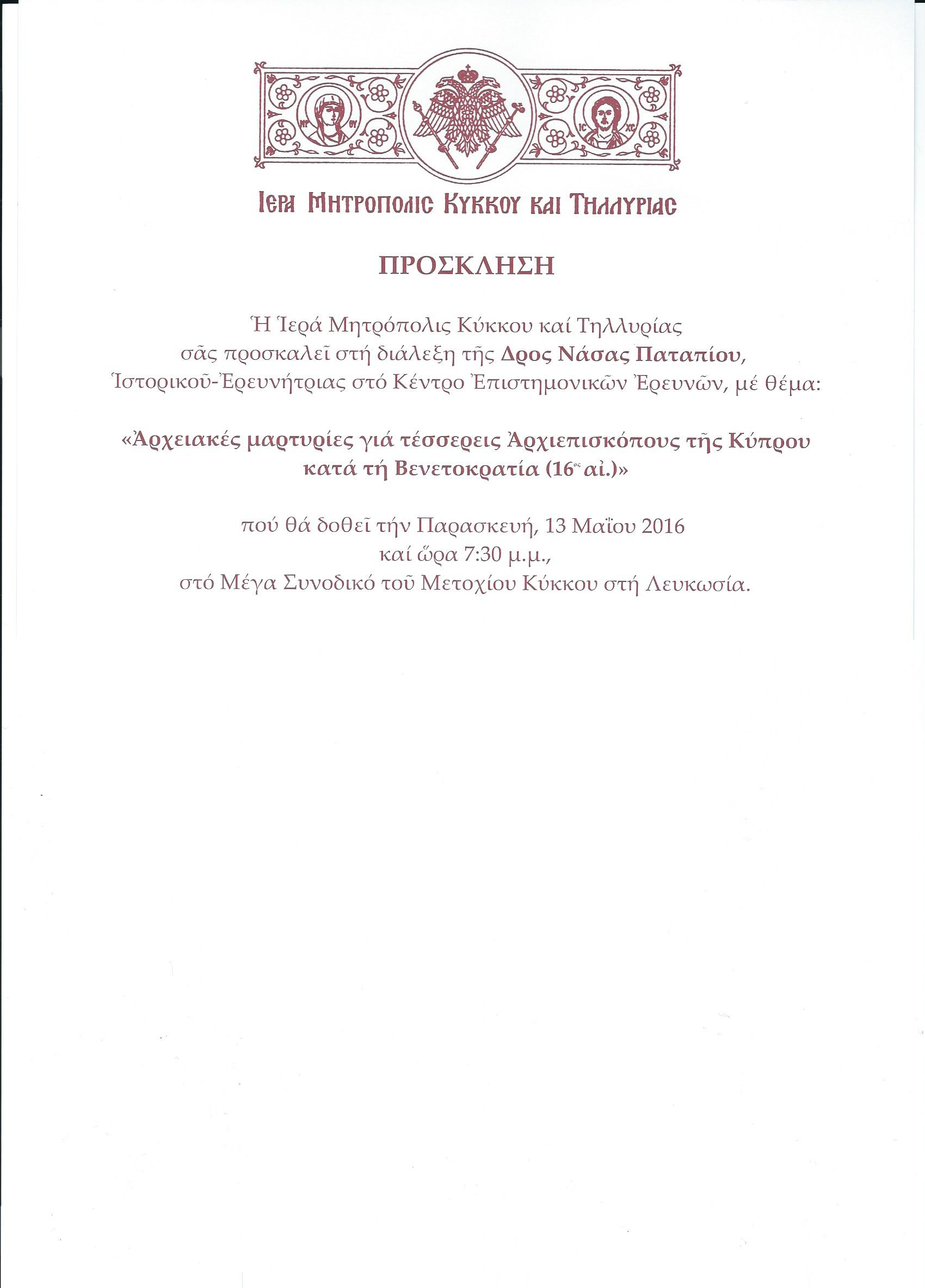 Διάλεξη Δρ.Νάσας Παταπίου Ιερά Μητρόπολη Κύκκου και Τυλληρίας